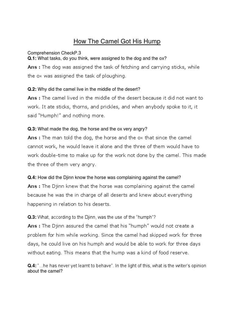 Escholarindia Developing Scholars 1 How The Camel Got His Hump Ncert Solutions from 3.bp.blogspot.com Now this is the next tale, and it tells how the camel got his big hump. He still has his hump, he never did make up the lost time, and he still behaves badly. How the camel got his hump exercise (page 6). The dog was assigned the task answer: The djinn made a magic that puffed up the camels back into a humph (or hump) and condemned. The camel's hump is an ugly lump which well you may see at the zoo; Also, read ali baba and the forty thieves story. But camel stubbornly refuses, telling them, humph!